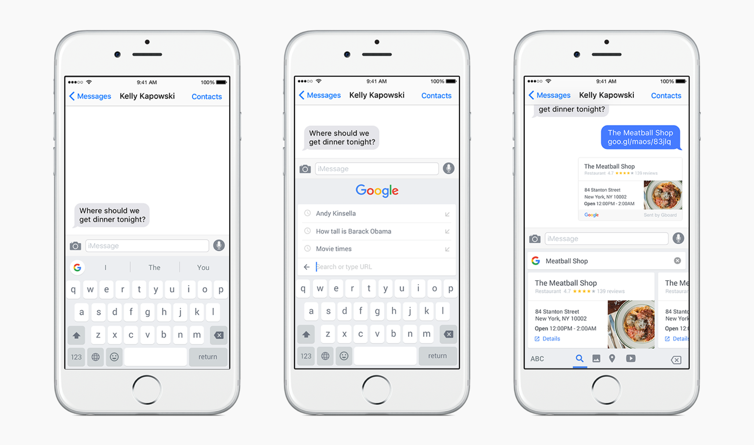 Gboard is Google search in your keyboard. I worked with the team at the Creative Lab at Google to create the product flow of searching and sharing results within the iOS chat experience. Direction by the amazing Heather Luipold.